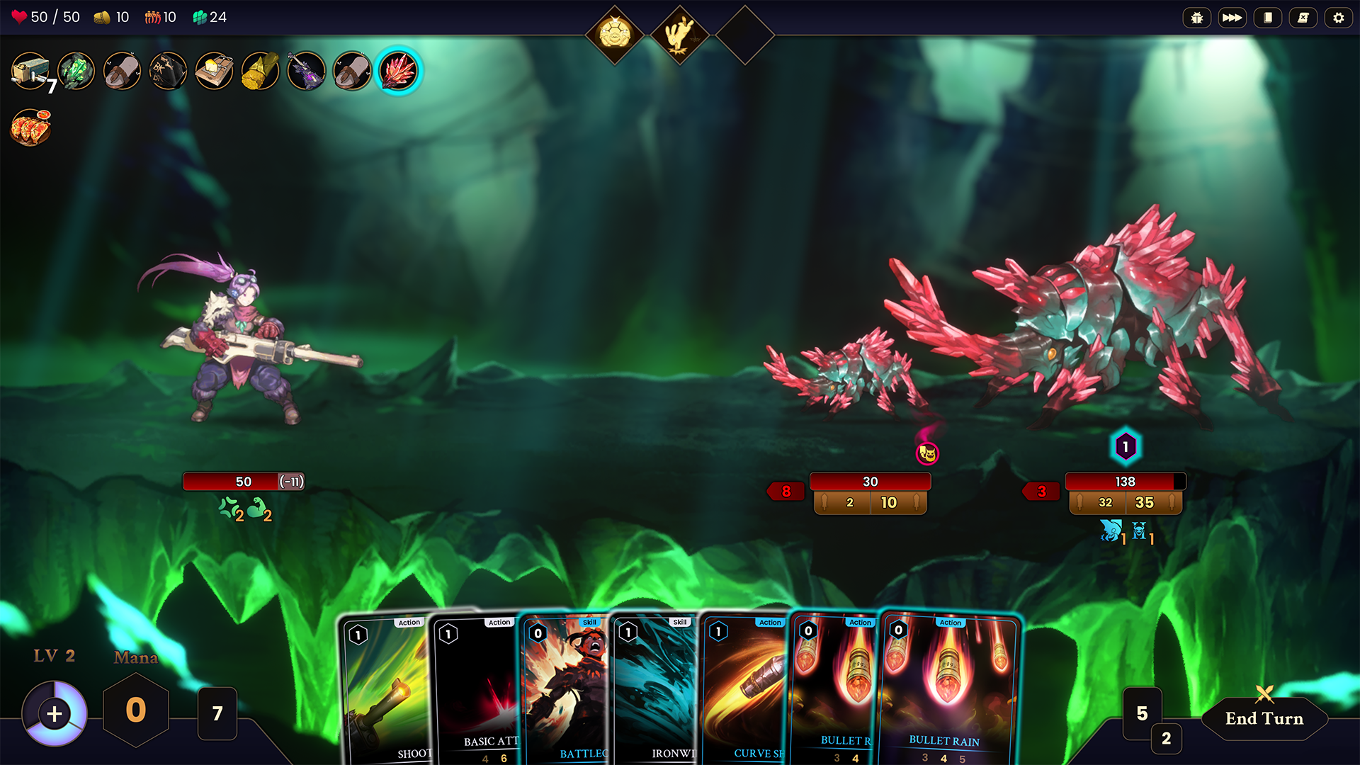 - Mana doesn’t regenerate automatically—you manage it. Inspired by the Land system from Magic: The Gathering, your challenge isn’t just about combos; your available mana is determined by your strategy.