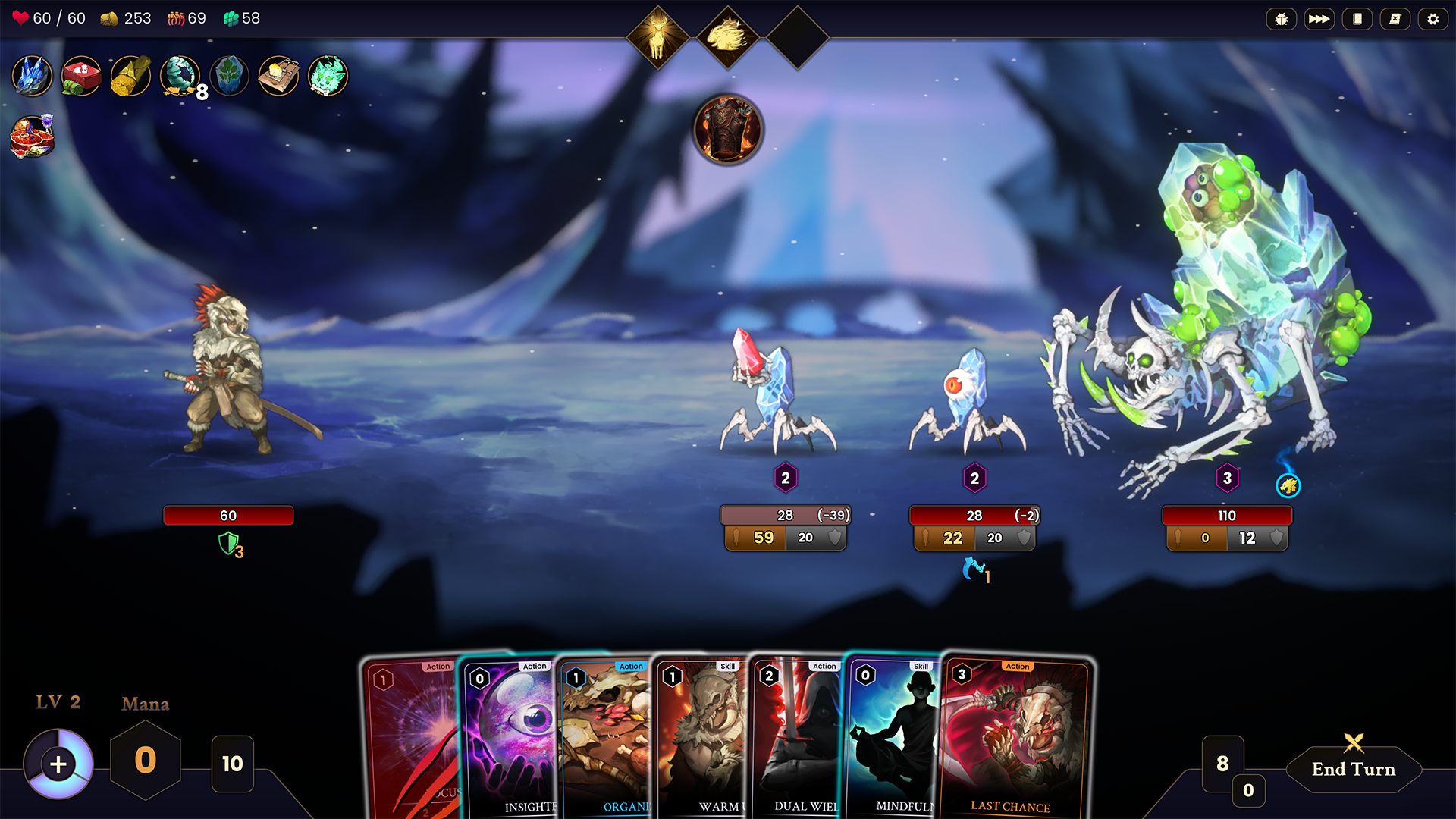 When removing cards is no longer the only way to refine your deck. The rewards you earn from battle become resources for card crafting at the Northwind Outpost. Infuse your cards with new abilities using gems, forge duplicates, smelt Mana cards to unlock stronger abilities, and merge similar cards to create even more powerful versions. Experience the thrill of discovering new combos and crafting the perfect one!